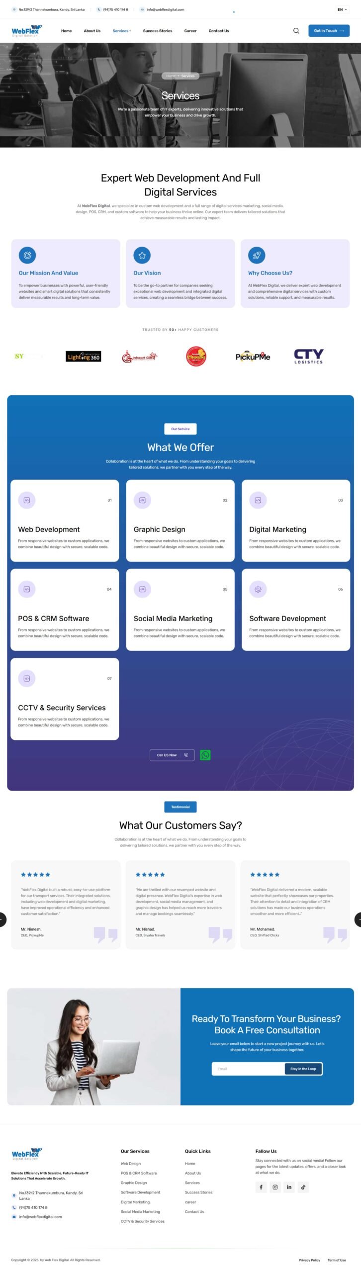 WebflexDigital specializes in custom development and marketing. They believe in combining cutting-edge technology with thoughtful user experience to deliver digital products that are not just functional, but also deeply aligned with business goals. Their mission is to empower businesses with web and mobile solutions, while providing exceptional customer support.